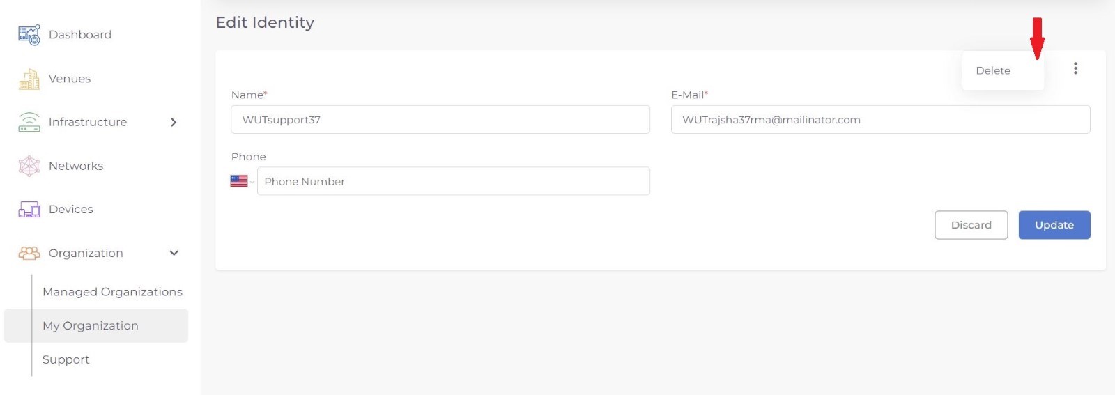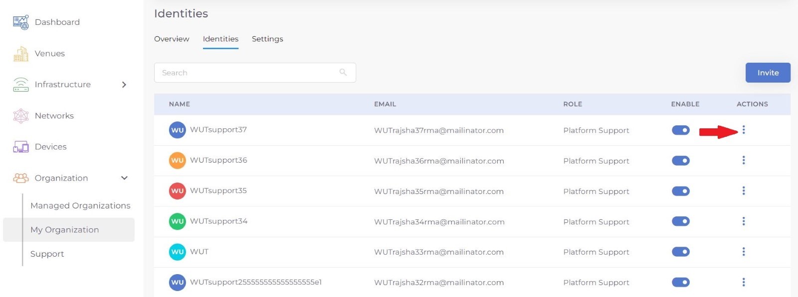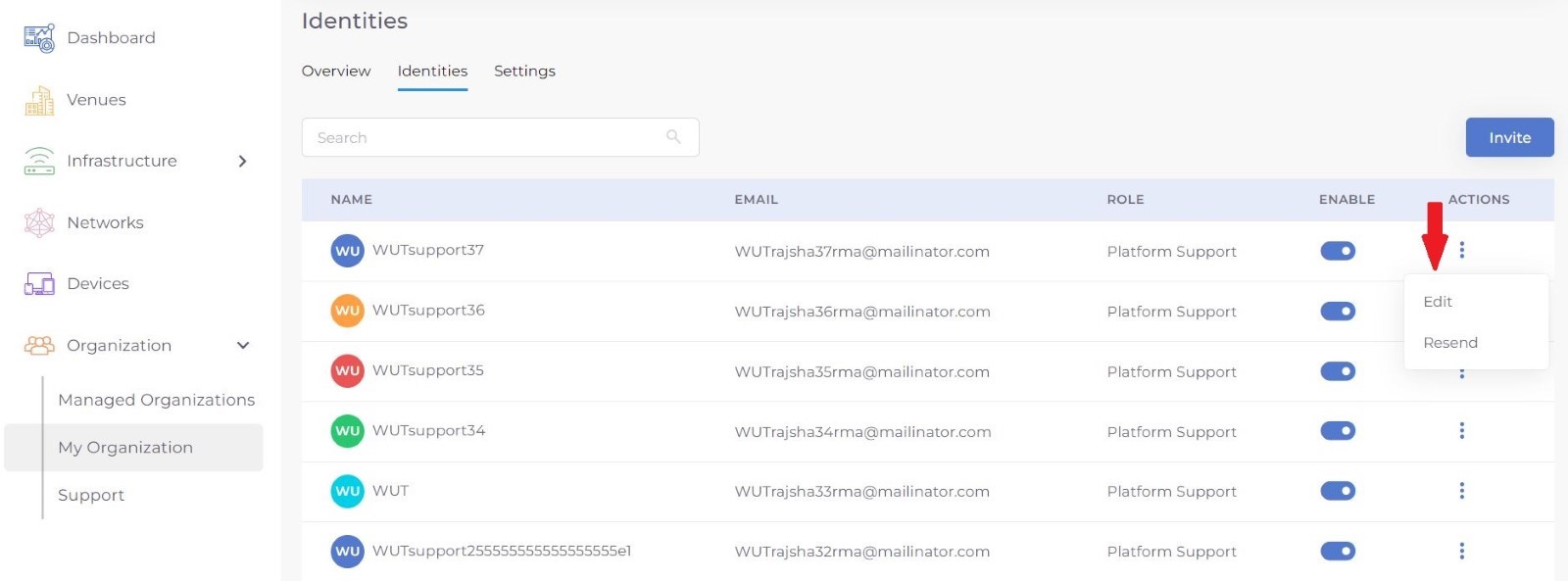 Step 1: Select My Organization from menu, and select Identities tab on top.