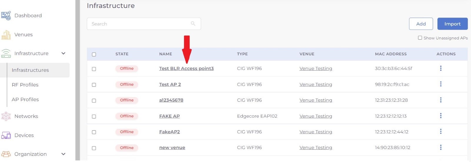 Step 1: Select Infrastructure from menu and click on the Access Point name from the list below