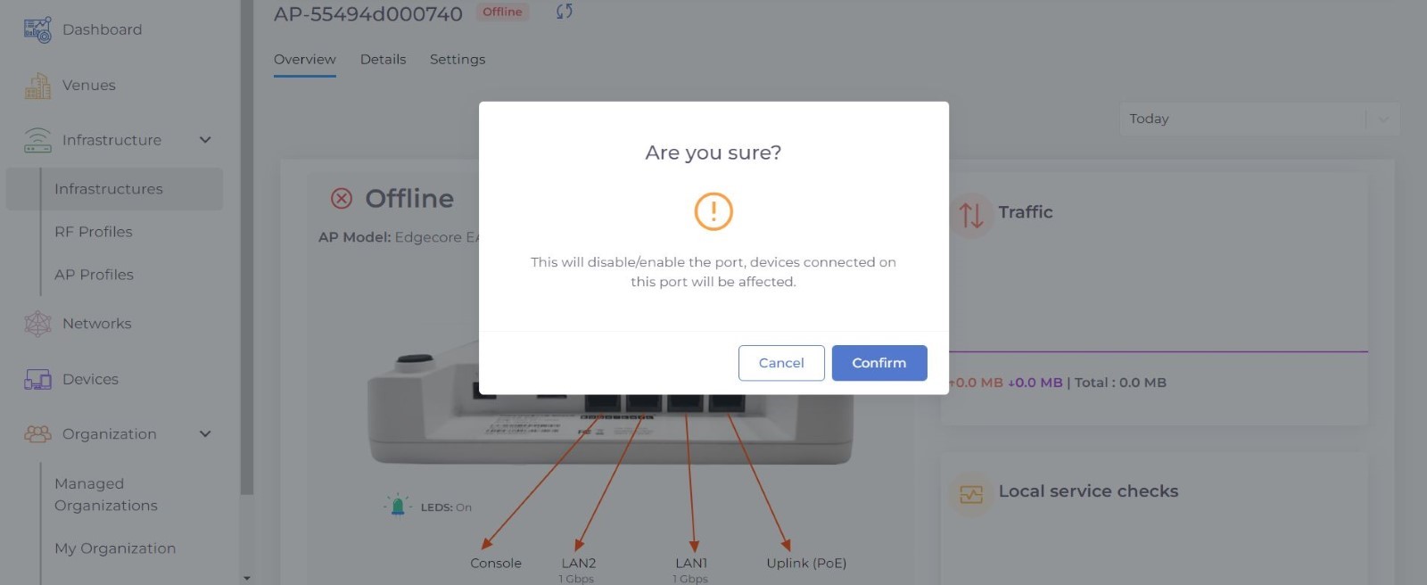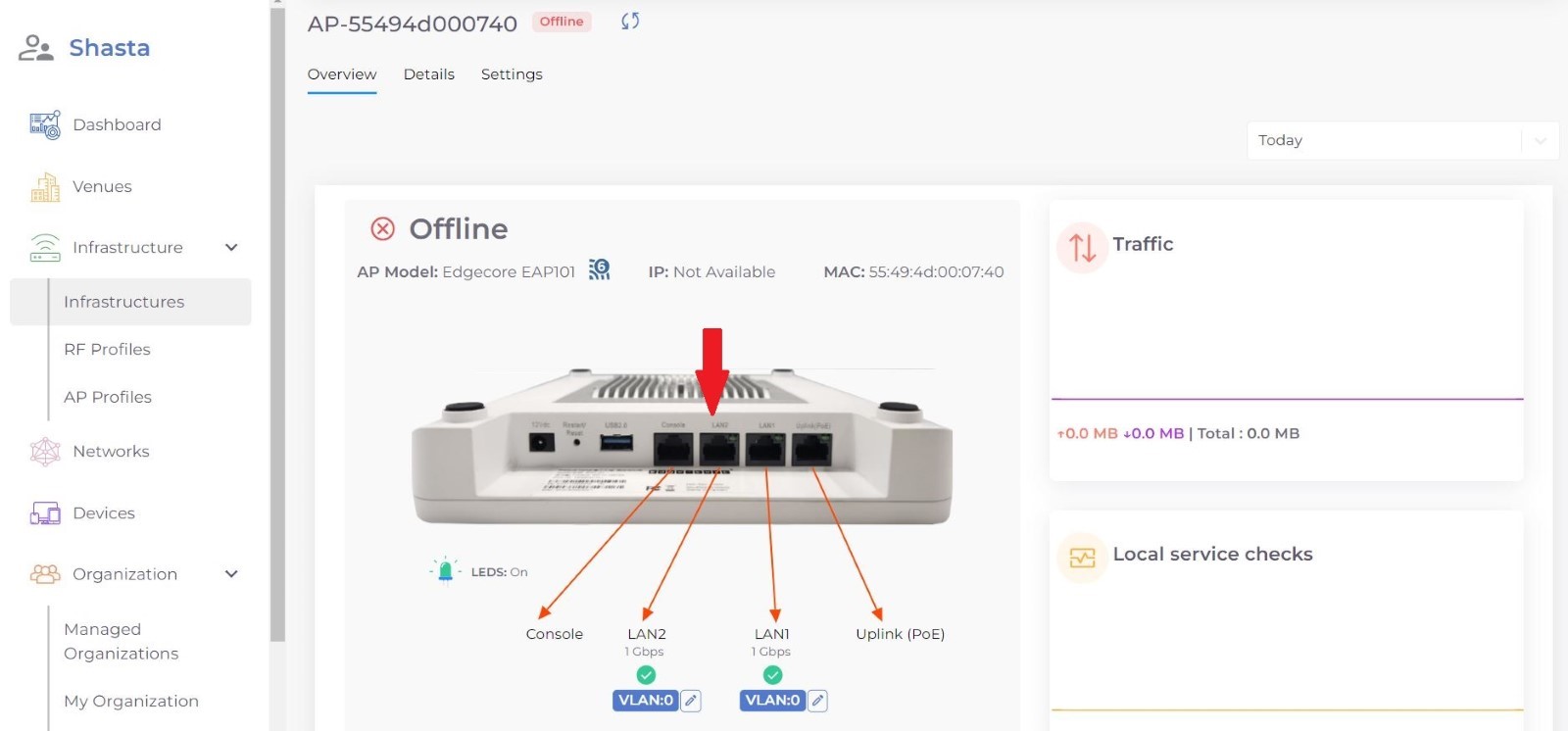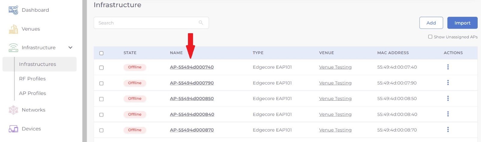 Step 1: Select Infrastructure from menu and choose the Access Point from the list on which you want to perform the action.