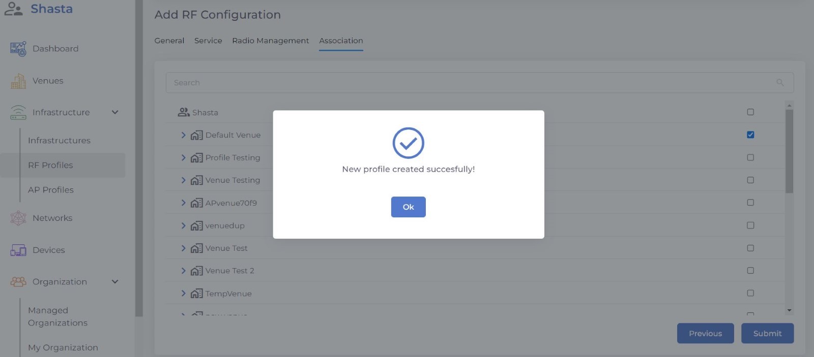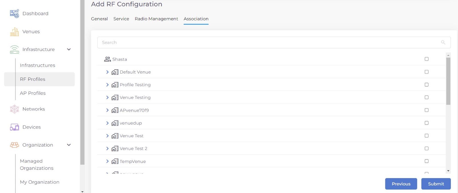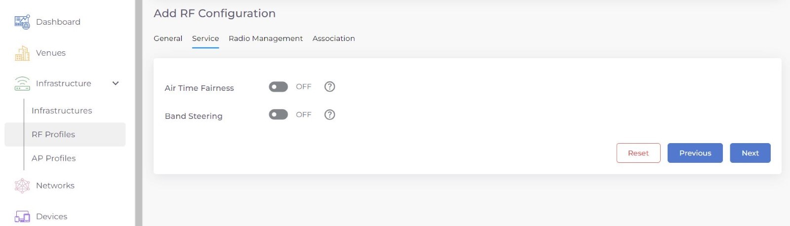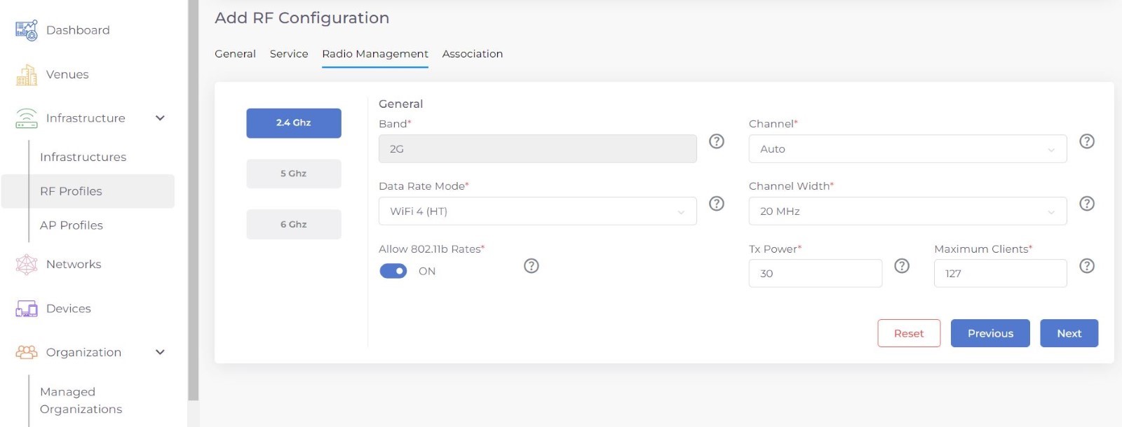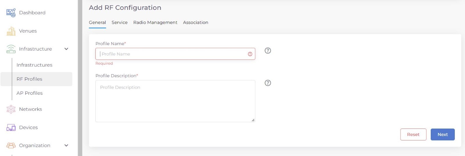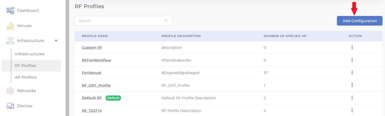 Step 1: Select RF Profiles under Infrastructure from the menu