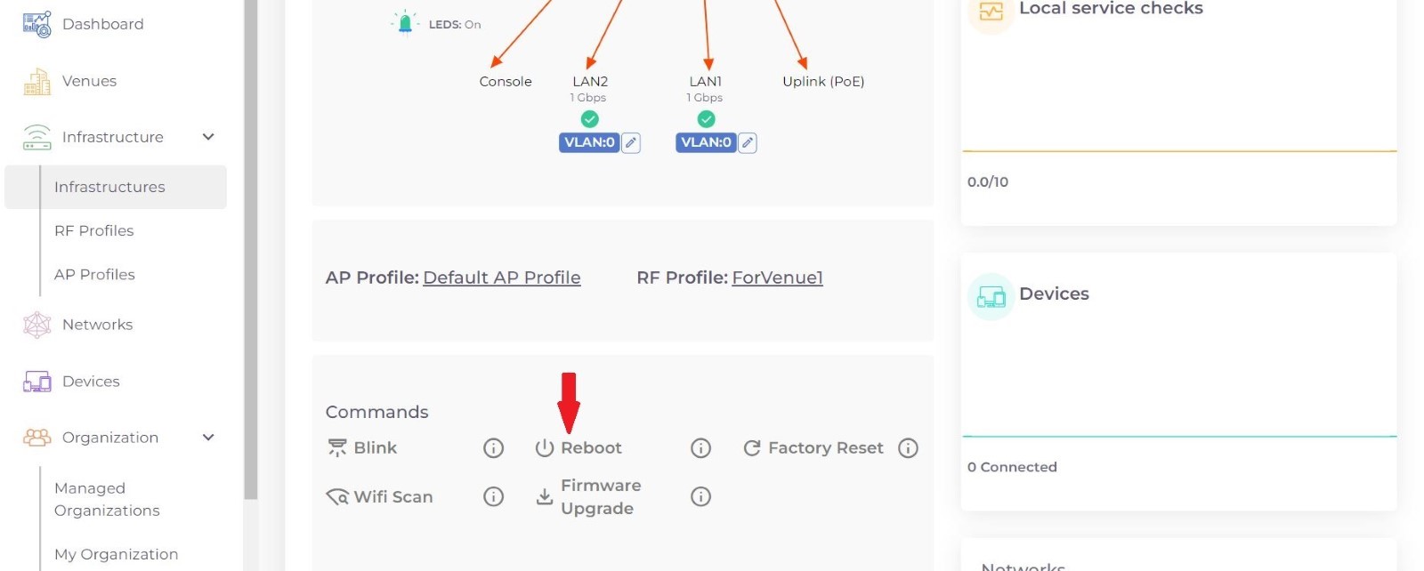 Step 1: Select Infrastructure from menu and select the AP to reboot from the list.